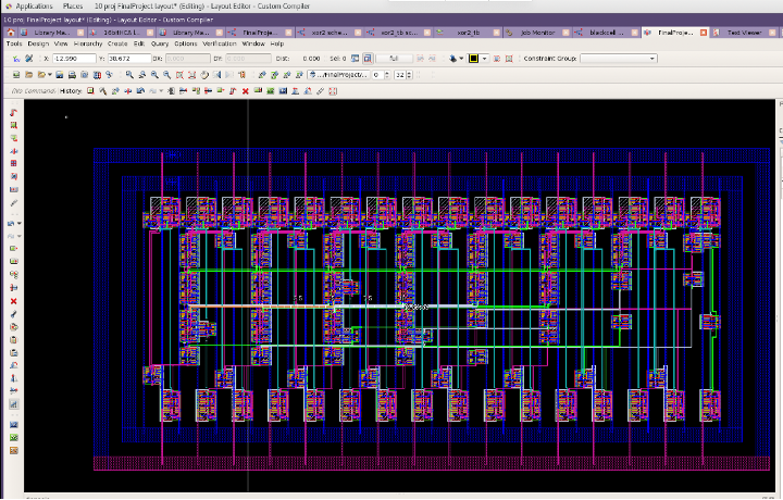 standard cell방식으로 구현한 H-C Adder 최종 layout이다.